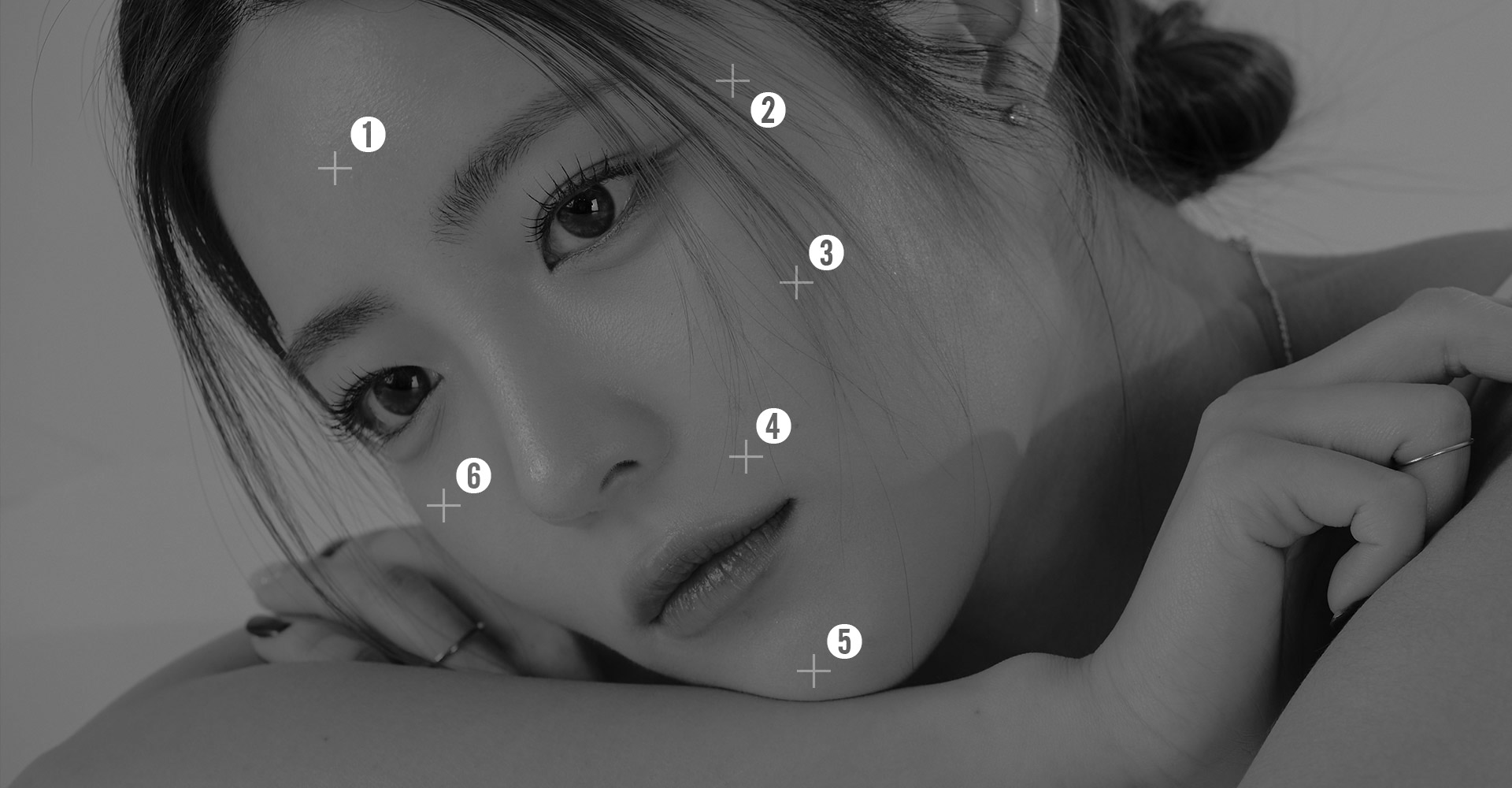 ❹ 팔자주름 ❺ 턱 끝 ❻ 앞볼/눈밑